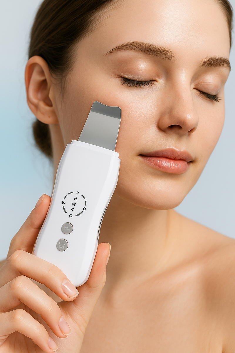 The Glowtura™ Ultrasonic Skin Scrubber uses professional 28 kHz ultrasonic technology to give you that post-facial glow — right at home.